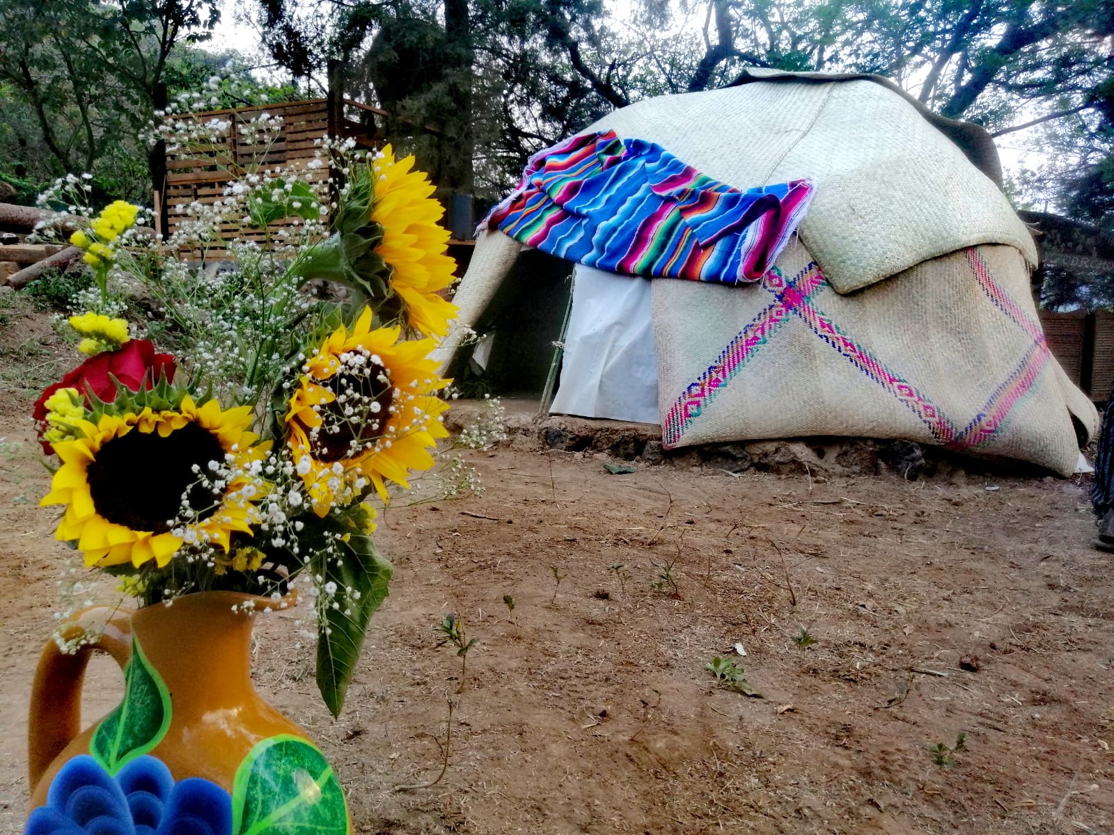Vive la sanadora y ancestral experiencia del temazcal. Conéctate con la naturaleza y nace de nuevo del vientre de nuestra madre tierra. Nuestro temazcal es amplio (ha albergado hasta 20 personas) y está hecho directamente sobre la tierra, con una estructura de carrizo y cubierto con petates. Tiene una vista inspiradora de las faldas del Cihuapapalotépetl. Si bien el temazcal requiere trabajo mental de uno mismo para aguantar las cuatro puertas de un temazcal ceremonial, también requiere mucho trabajo (del guía del temazcal y del hombre de fuego), recursos (toda la leña que se requiere para calentar las piedras) y planificación.
