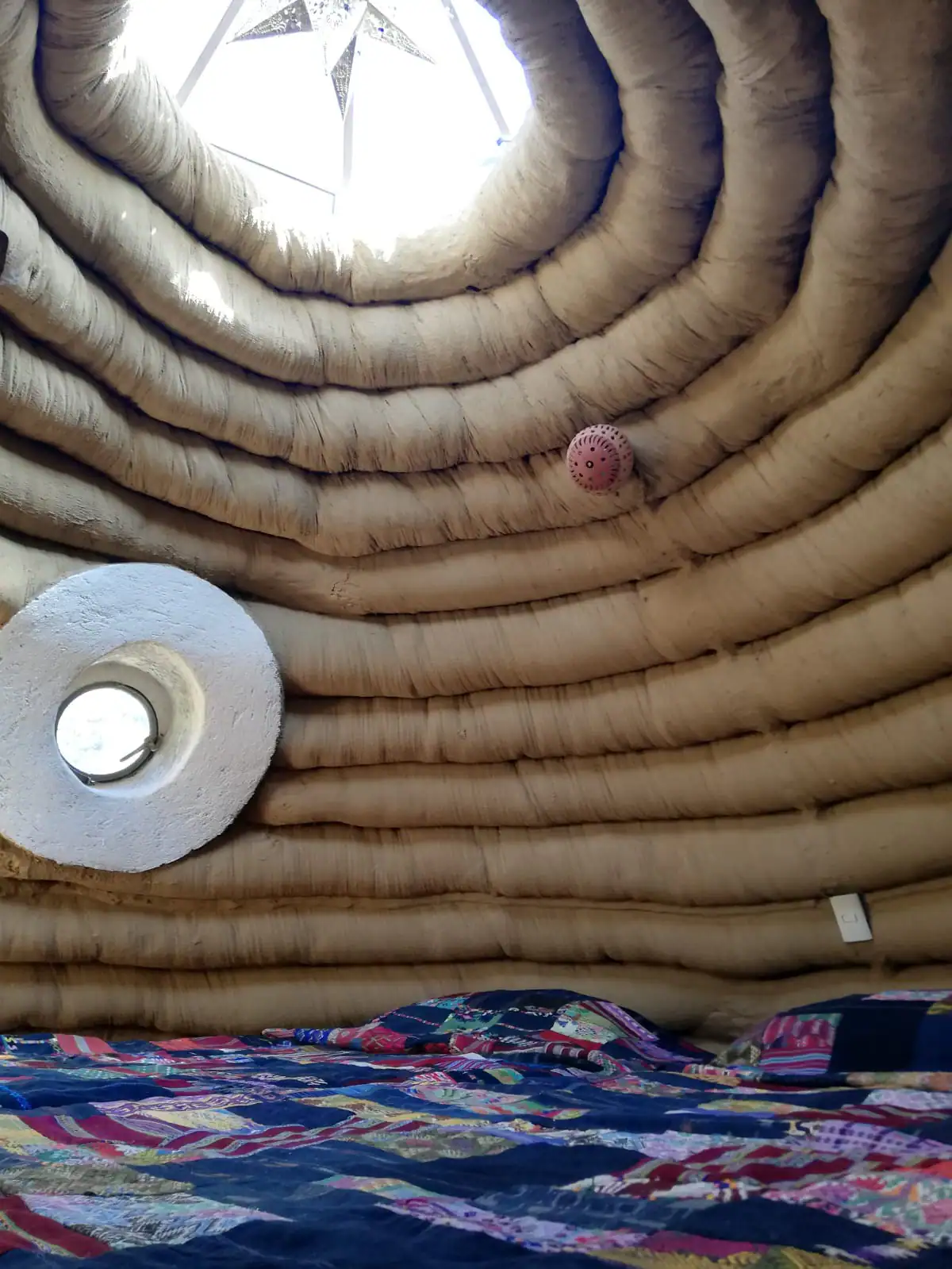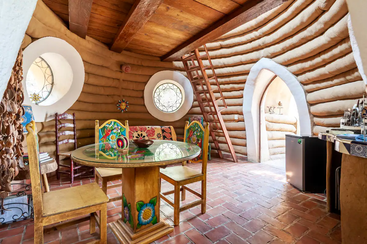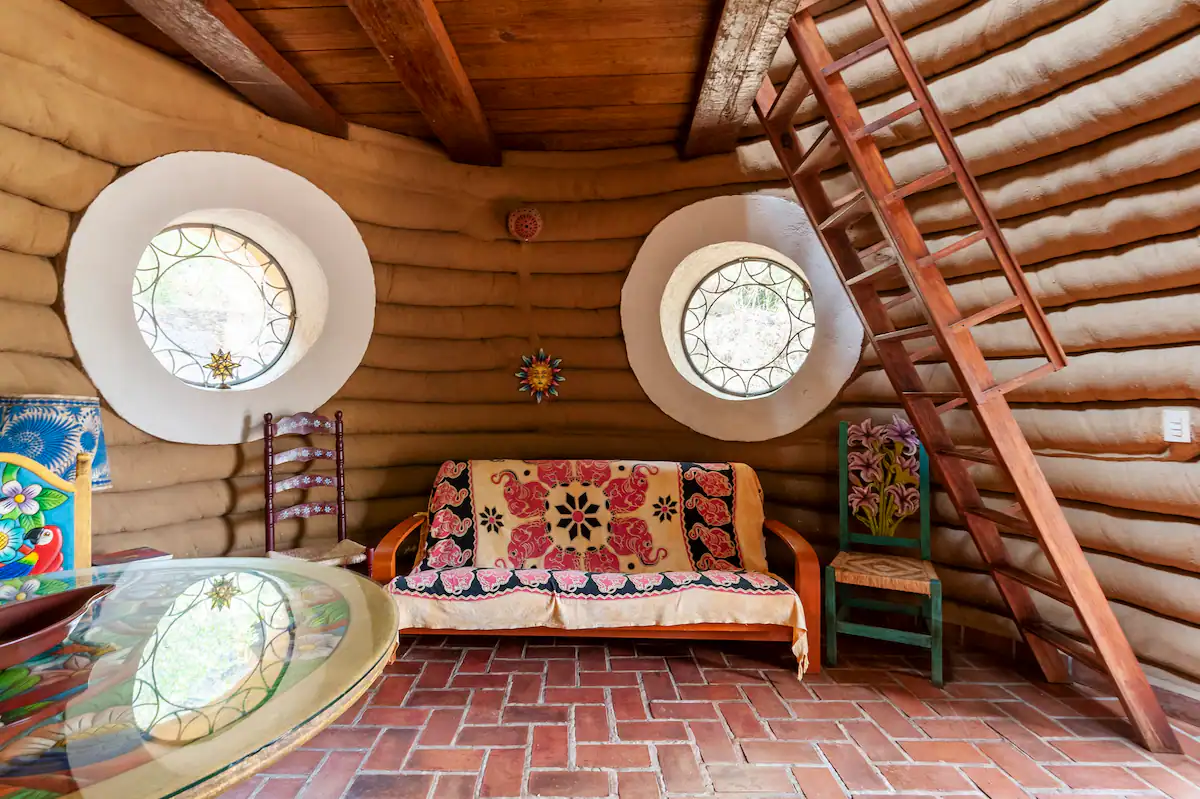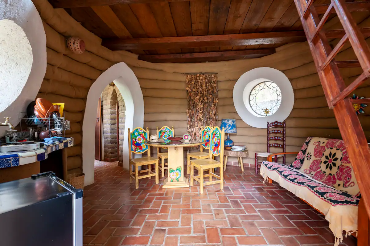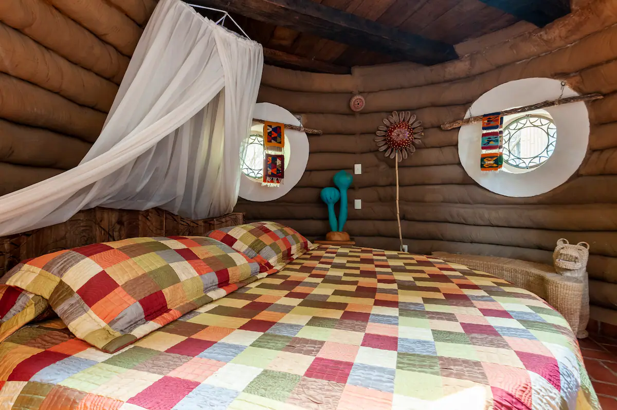 ¡Vive la experiencia de dormir dentro de una colmena! Casa Colmena es una cabaña de Superadobe conformada por dos domos que nos remiten al interior de una colmena. Cada uno de los domos tiene un tapanco con un domo de cristal y con colchones, para dormir bajo la luz de las estrellas. En la recamara principal una amplia cama redonda te invita a descansar aislado con esos amplios muros redondos de tierra y cal. Cuenta con baño completo, asador para carne, calentador de agua solar, cocineta, jardín privado. Siete huéspedes, dos habitaciones (la primera con una cama king size y una cama individual, y la segunda con un sofa-cama y una cama matrimonial).