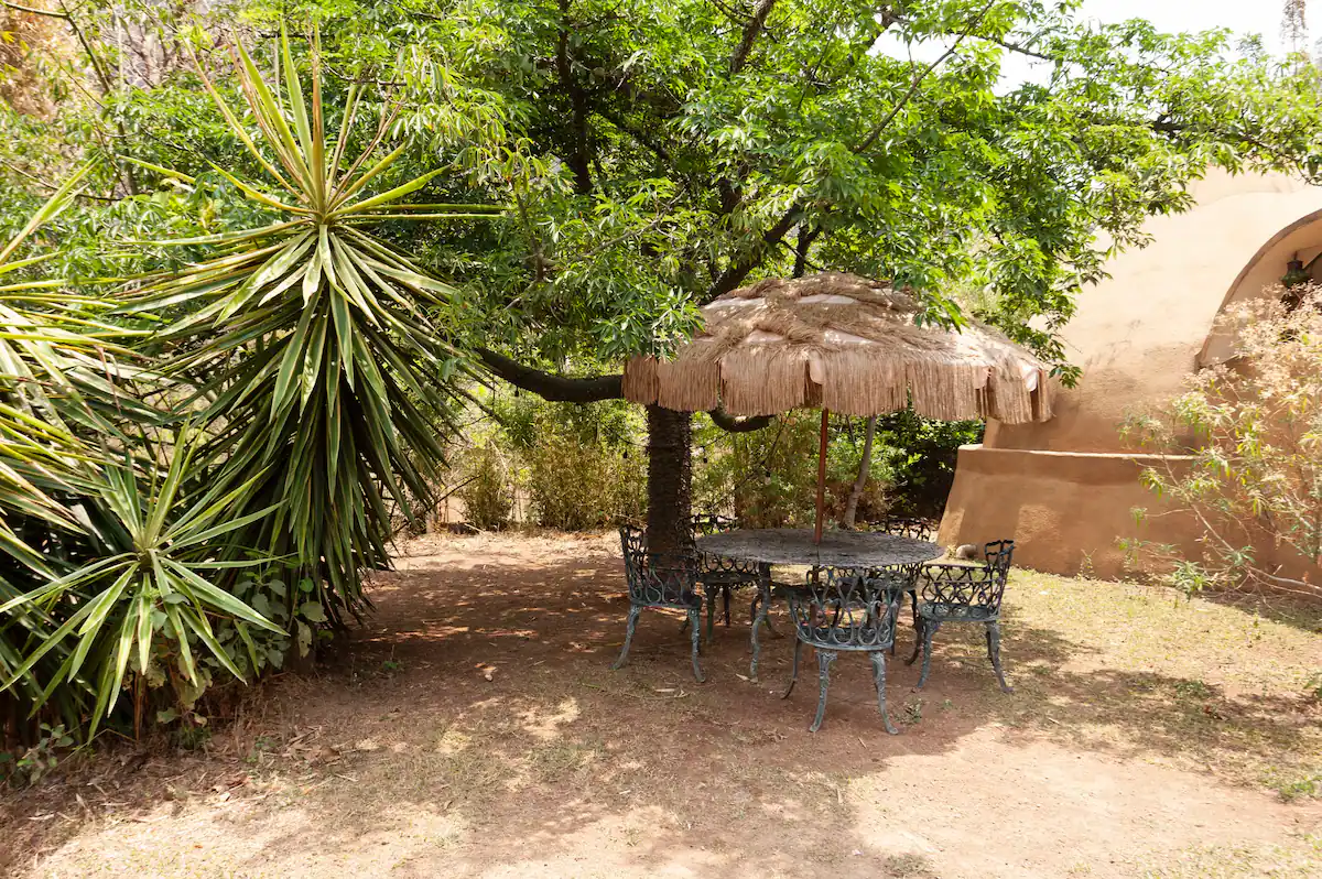 Jardín privado con asador y mesa exterior